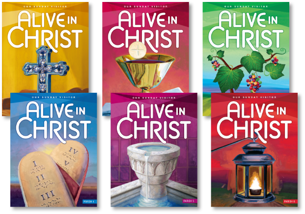 Alive in Christ: Discovering and Sharing the Kerygma is a comprehensive, systematic, and developmentally-appropriate religion program for children in 1st through 8th grades. Covering the seven major topics of catechesis in a spiral scope and sequence, lessons follow a three-step process: an invitation to encounter God through his Word (the Invite step), proclamation of the faith through Sacred Scripture and Sacred Tradition (the Discover step), and connection to everyday life so learners can share their faith in word and action (the Live step).